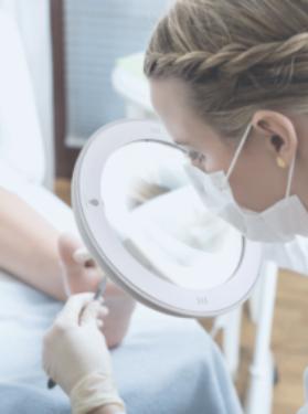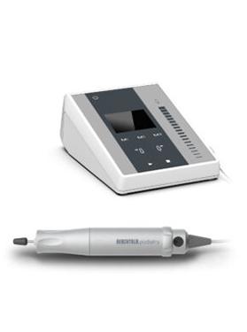 Ein Podologiegerät mit Staubabsaugung besteht aus einem Bedienfeld mit austauschbarem Staubbeutel und einem Handstück mit einer Saugdüse neben dem Schneidwerkzeug besteht. Haut- und Nagelstaub, der während der Behandlung freigesetzt wird, wird sofort von der Düse am Handstück angesaugt und im Staubbeutel aufgefangen.